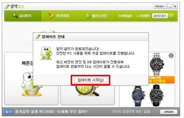 알약 설치 완료 후 자동 업데이트 진행이 되는데요 만약 구버전을 받아주셨다 할지라도 어차피 업데이트 패치가 진행되니 큰 걱정은 하지 않으셔도 됩니다