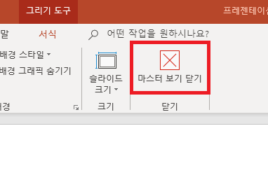 그 다음 [마스터 보기 닫기] 를 클릭해 주면 해당 기능이 종료되면서