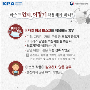 특히 의료기관 방문 시 마스크를 착용해야 합니다. 또한 사람이 많이 모이는 장소에 가신다면 마스크를 착용해야 합니다. 만약 마스크가 없거나 구하지 못했다면 기침이나 재채기할 때 옷소매로 입과 코를 가리셔야 합니다.